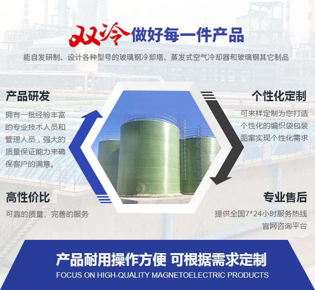 山东双冷环境科技有限公司是一家主要经营圆形冷却塔、凉水塔、无动力冷却塔、喷雾冷却塔、冷却塔、混凝土冷却塔、玻璃钢罩、方形冷却塔、节能冷却塔、玻璃钢冷却塔、玻璃钢格栅、玻璃钢管道、玻璃钢罐、废气处理、玻璃钢防腐、玻璃钢风机、玻璃钢等产品设计、研发、制造、销售和服务为一体的专业公司。可以根据用户需求提供系统的换热解决方案和水处理解决方案。