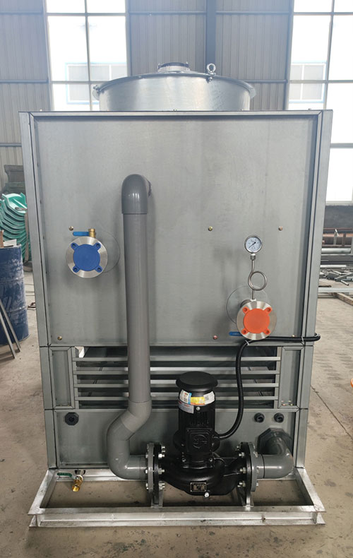 内循环:需要冷却的热水从进水口进入冷却塔,沿着管道向上流动,从顶部进入盘管内部。在水泵的抽力下,热水在盘管内循环流动,与管外的喷淋水进行热交换,将热量传递给喷淋水。