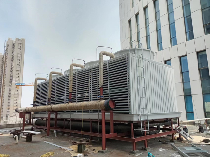 横流式冷却塔(crossflow cooling tower)是一种可将水冷却的装置。水流从塔上部垂直落下,空气水平流动通过淋水填料,气流与水流正交的冷却塔。按冷却水的水质分为:开式塔和闭式塔。按噪声等级分为:普通型(P)、低噪声型(D)、超低噪声型(C)、工业型(G)。